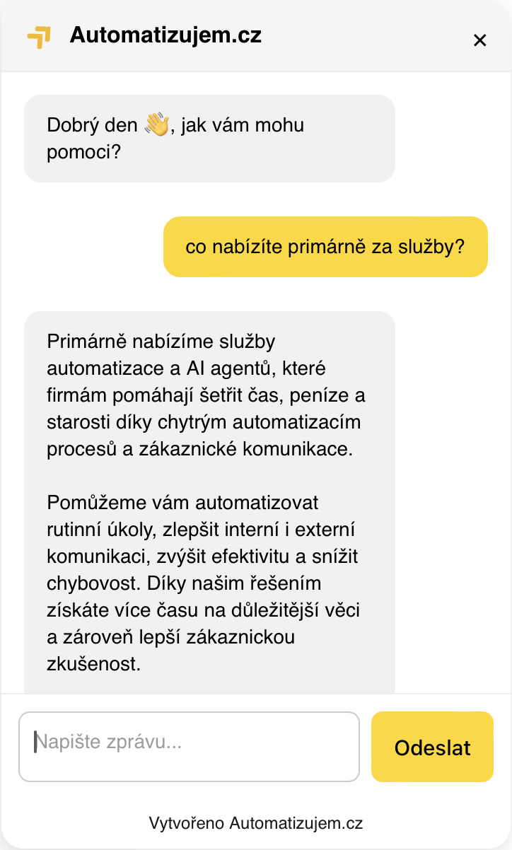 Automatizujte až 90 % dotazů, zrychlete zákaznickou podporu a získávejte více objednávek i poptávek – 24/7, bez čekání a bez zbytečné práce vašeho týmu.